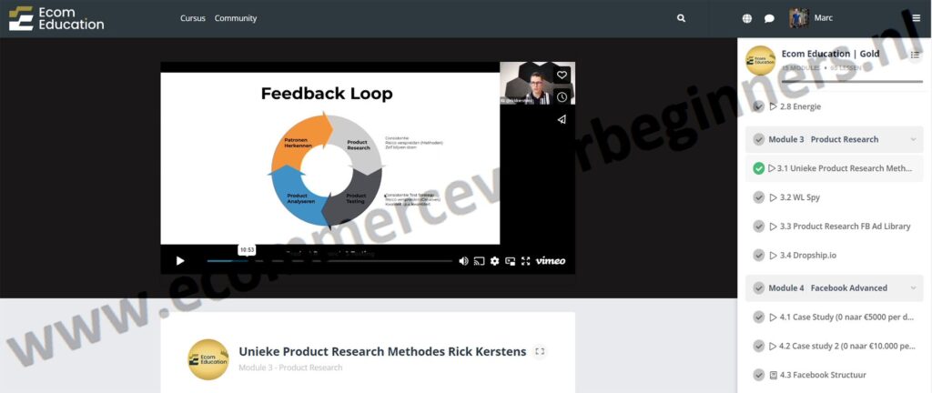 Een van de voordelen van Ecom Education is de toegang tot waardevolle modules en meer dan 105 lessen. Of je nu nieuw bent in e-commerce of al wat ervaring hebt, deze cursus biedt gedetailleerde begeleiding om succesvol te worden in de wereld van online winkelen.