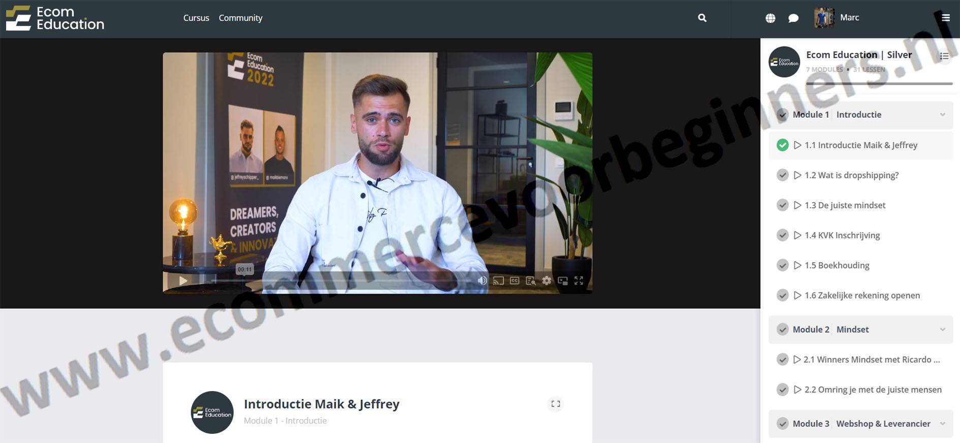 Een van de voordelen van Ecom Education is de toegang tot waardevolle modules en meer dan 105 lessen. Of je nu nieuw bent in e-commerce of al wat ervaring hebt, deze cursus biedt gedetailleerde begeleiding om succesvol te worden in de wereld van online winkelen.