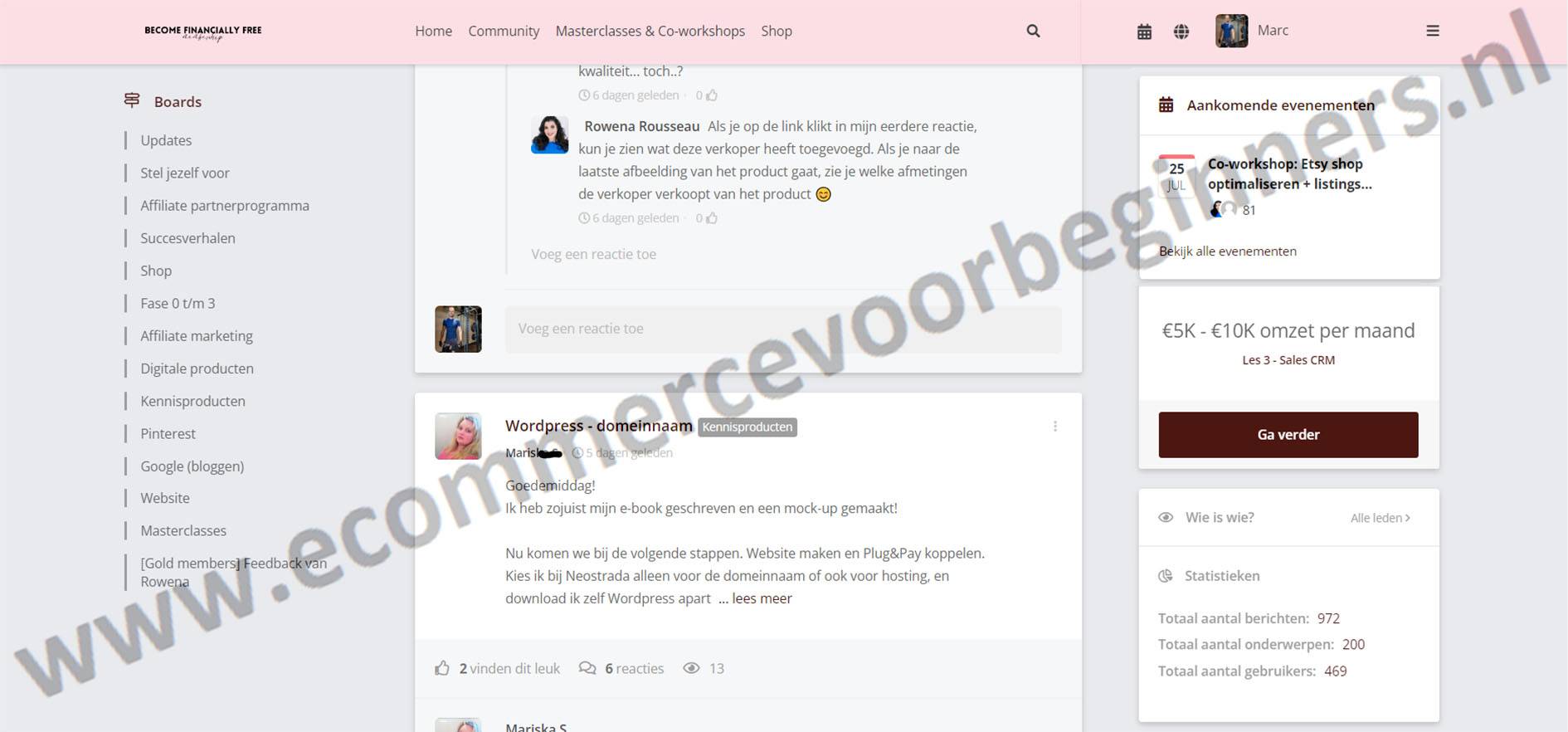 Als lid van de gemeenschap krijg je ook exclusieve toegang tot extra bonussen en evenementen. Dit kan variëren van live Q&A-sessies met Rowena Rousseau tot speciale kortingen op andere cursussen en tools voor ondernemerschap.
